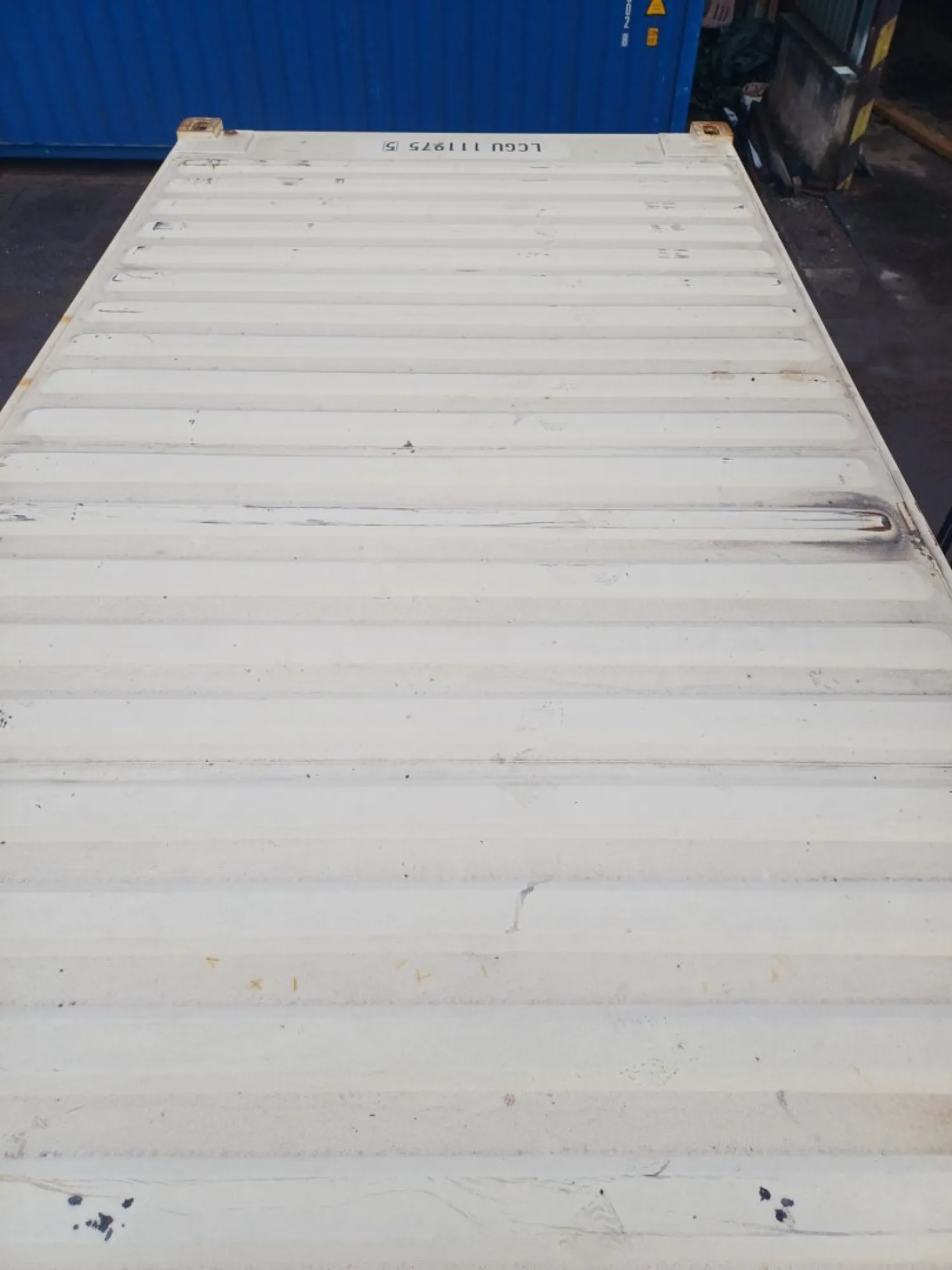 Kontejner vykazuje mírné známky opotřebení, mj. odření, promáčknutí a různý stupeň vyblednutí barvy.