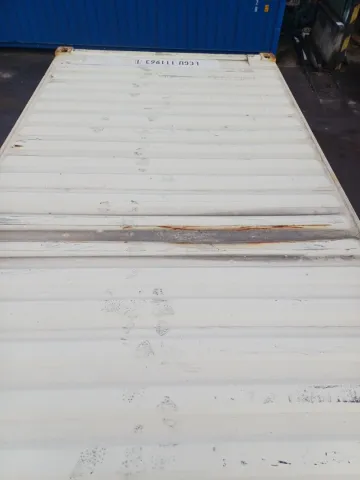 Kontejner vykazuje mírné známky opotřebení, mj. odření, promáčknutí a různý stupeň vyblednutí barvy.