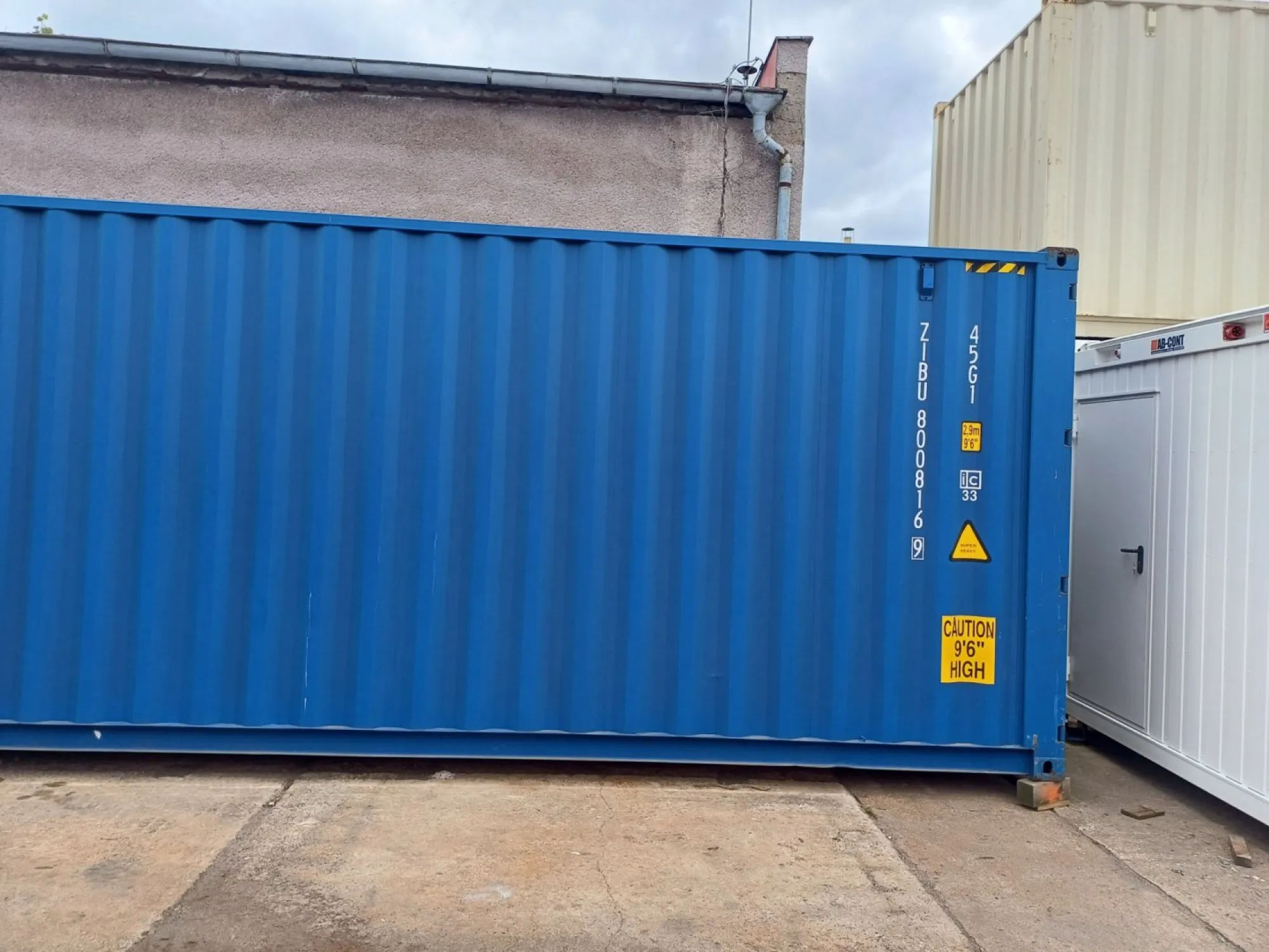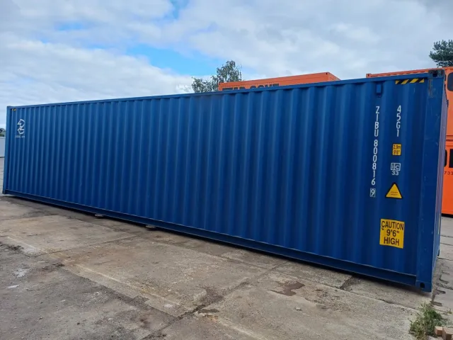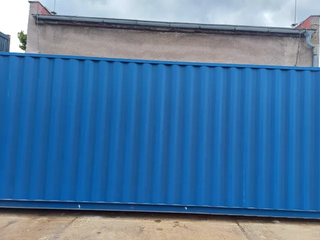 K okamžitému prodeji nabízíme tento lodní nebo také přepravní 40´ High-Cube kontejner v modré barvě RAL 5010.