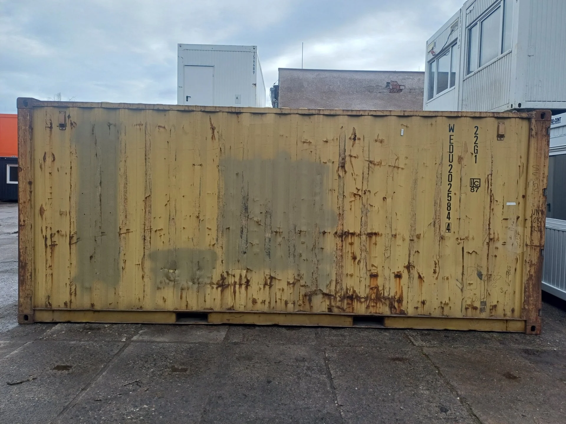 Nabízíme Vám k prodeji použitý lodní kontejner v žluté barvě.
