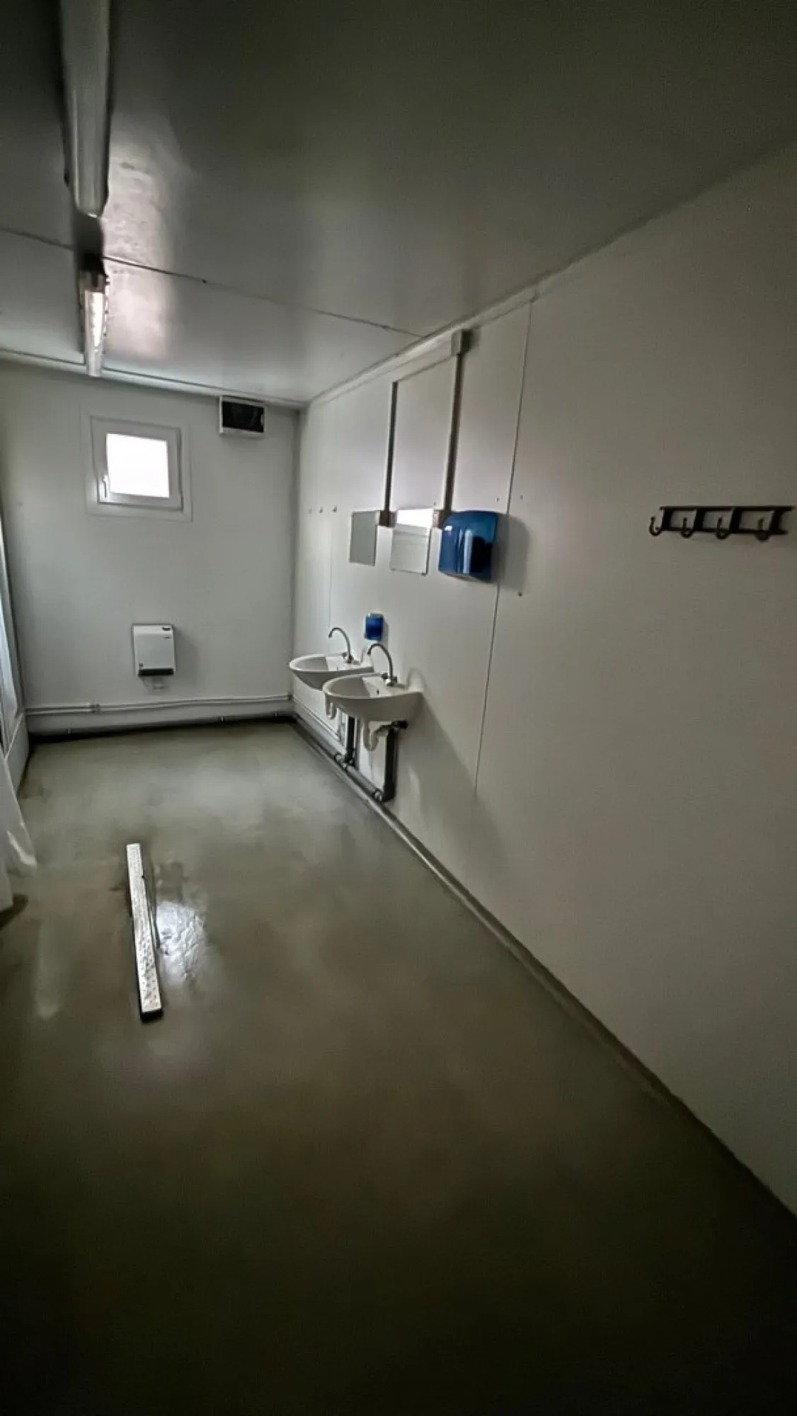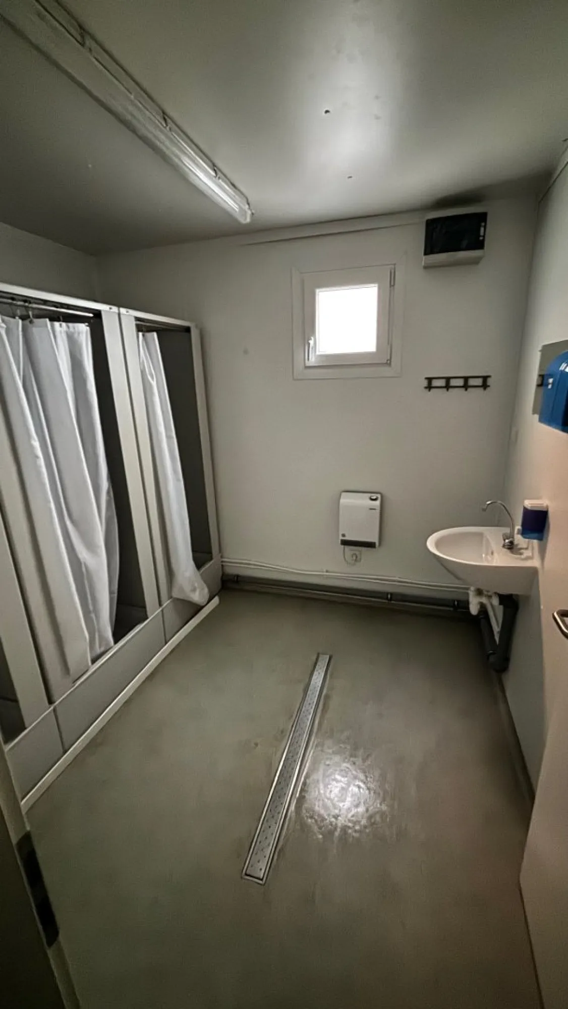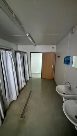 Vybavení: 2x venkovní dveře, 5x vnitřní dveře, 1x okno, 3x sanitární okno, 13x sprcha, 2x WC kabina, 6x umyvadlo. BEZ BOJLERŮ.