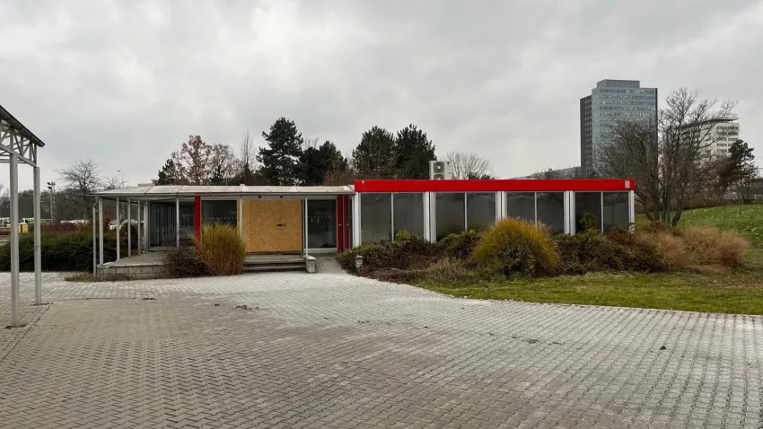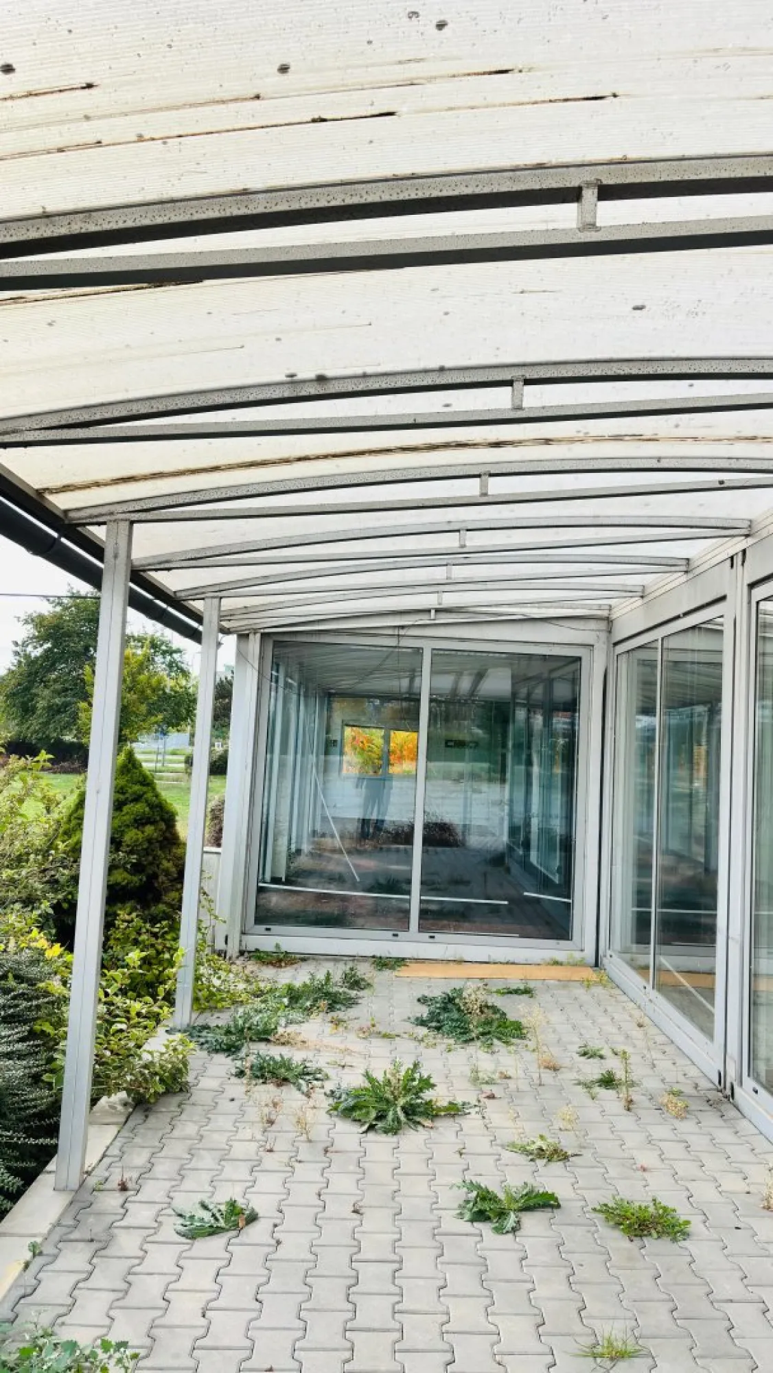 Součátí je stříška a vnitřní skleněné kóje - DEMONTOVANÉ.