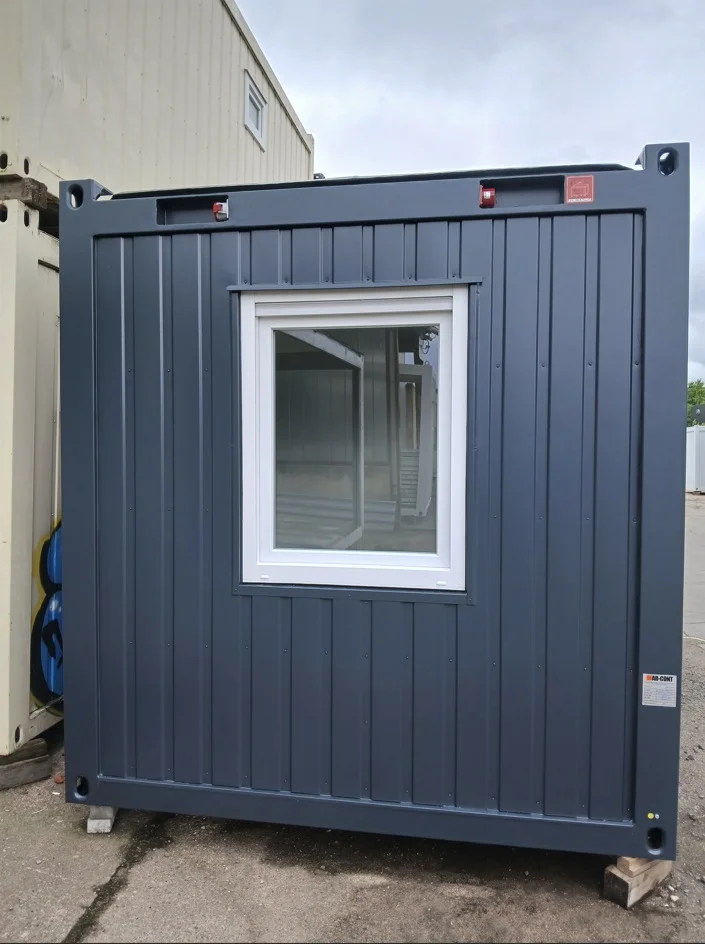 Nabízíme novou izolovanou obytnou buňku 4000 x 2435 x 2590 mm v antracitové barvě RAL 7016.