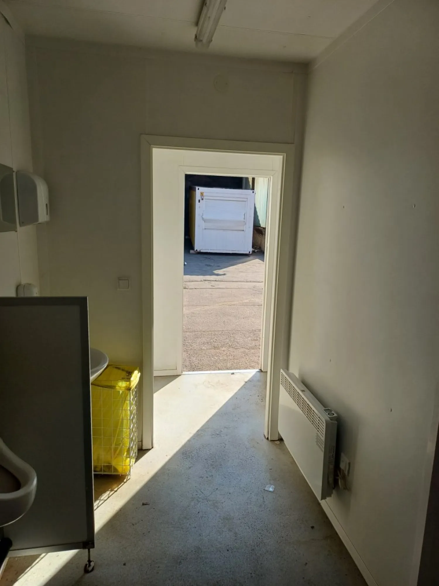 Vybavení: 1x venkovní dveře, předsíňka, 1x vnitřní dveře, 4x sanitární okno, 4x WC kabina včetně WC a dveří, 2x umyvadlo, 4x pisoár.