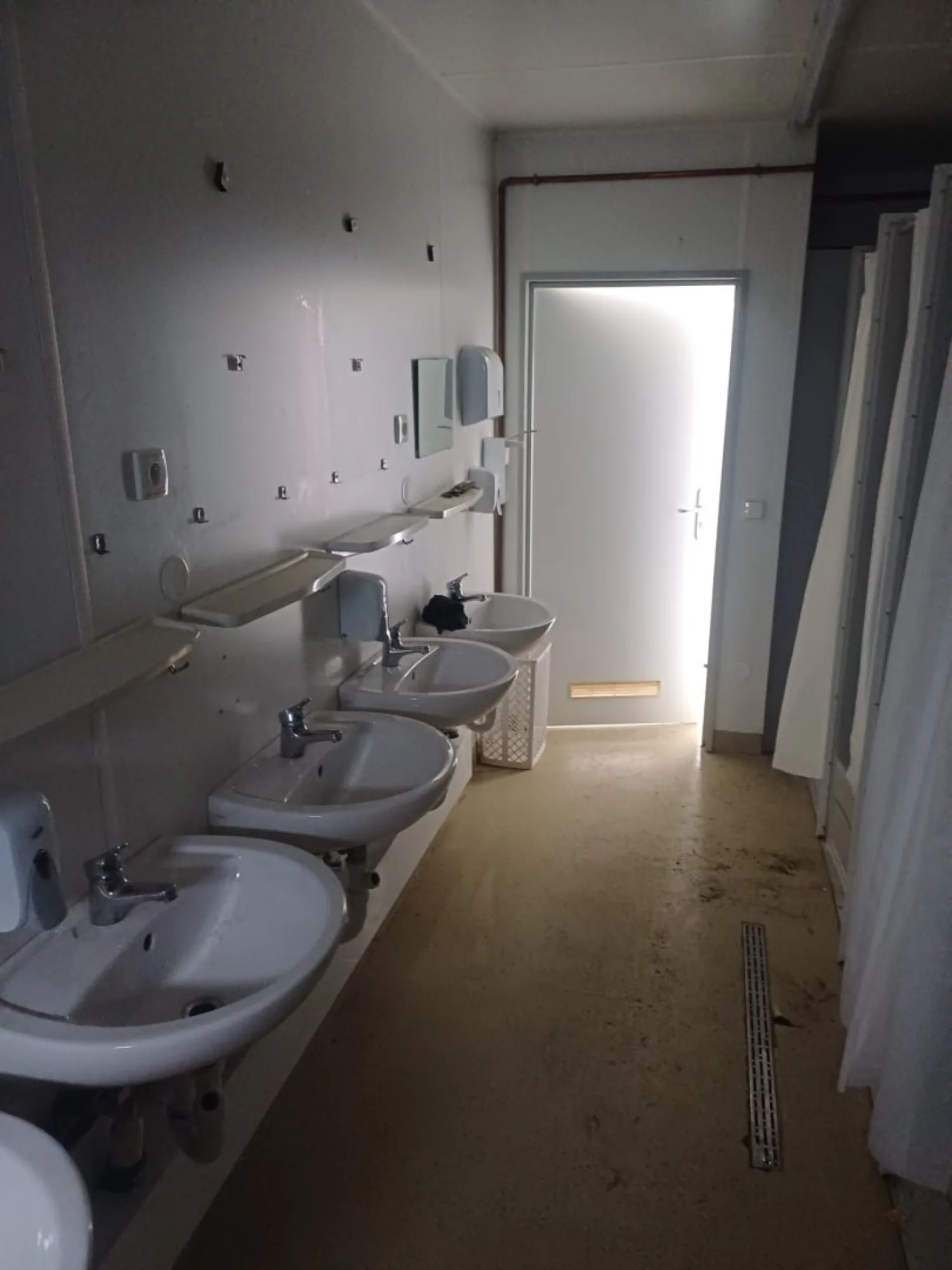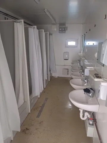 Vybavení: 1x venkovní dveře, 2x vnitřní dveře, 1x sanitární okno, 6x sprchovací kabina, 6x keramické umyvadlo, 1x bojler