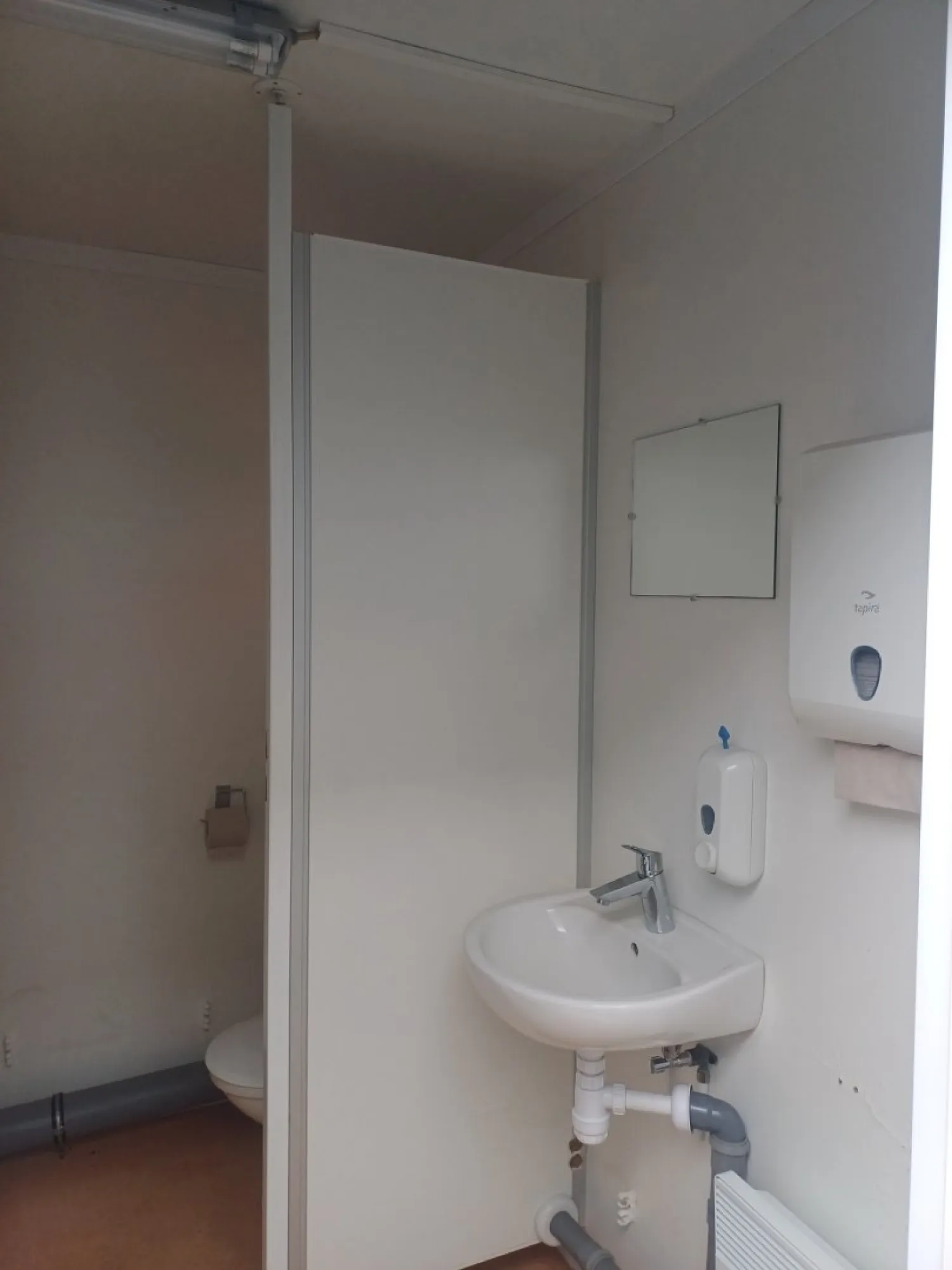 Nabízíme k prodeji použitou sanitární buňku o rozměru 6x2,5 m.