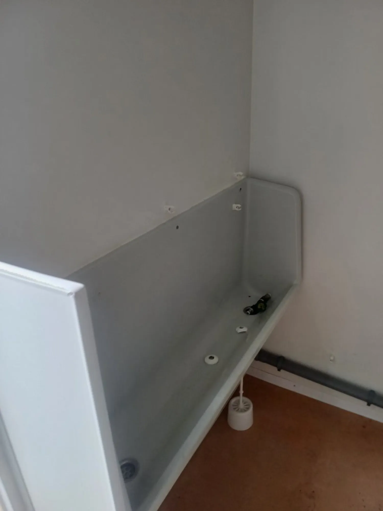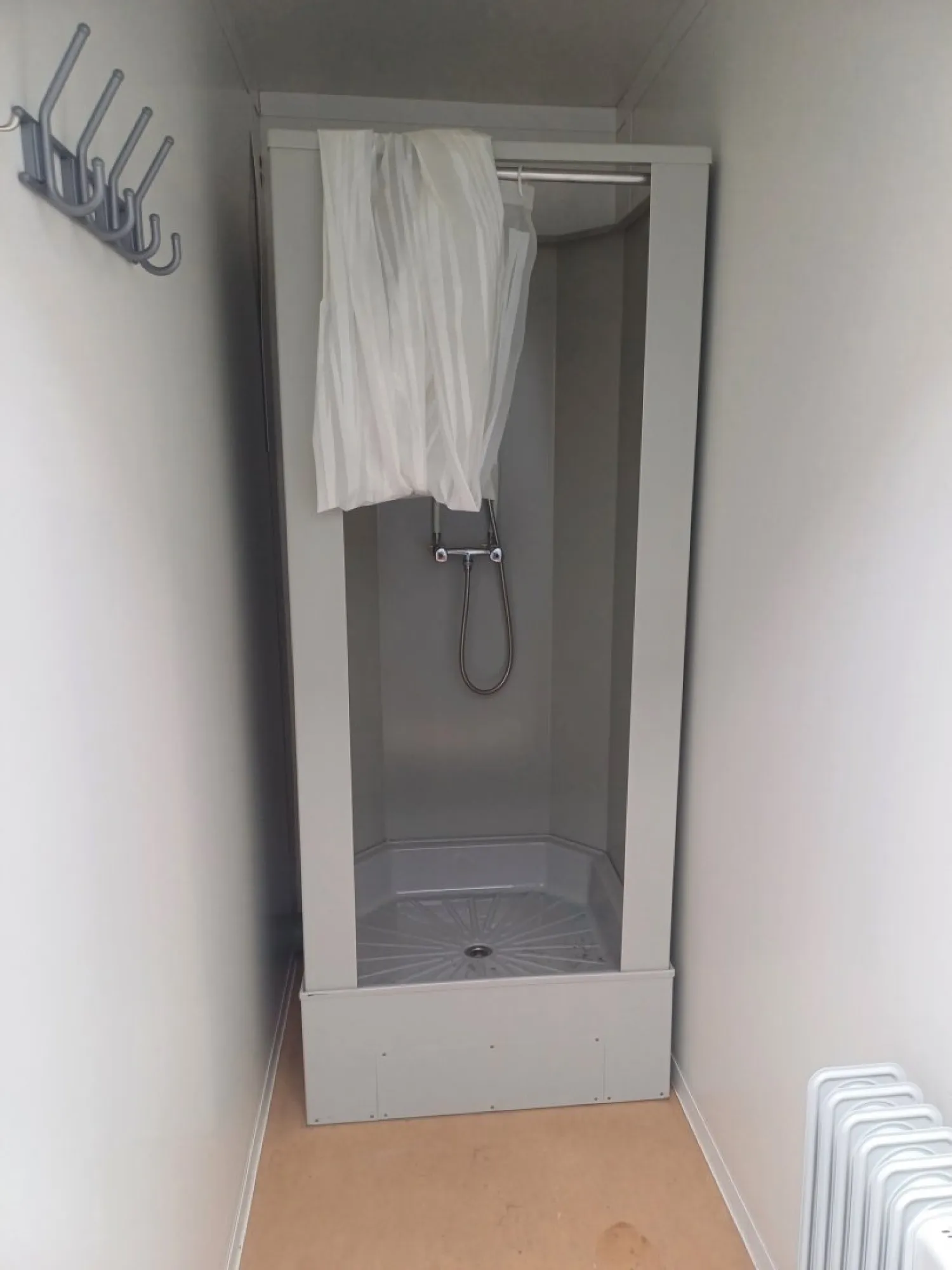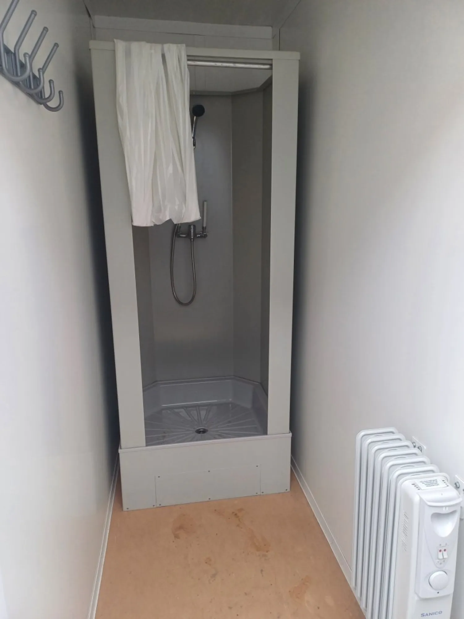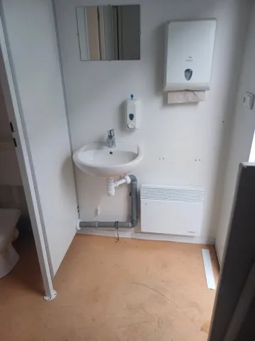 Vybavení: 4x venkovní dveře, 2x sanitární okno, 3x toaletní kabina s keramickým WC, 1x pisoár, 2x sprchovací kabina, 2x keramické umyvadlo, 1xbojler
