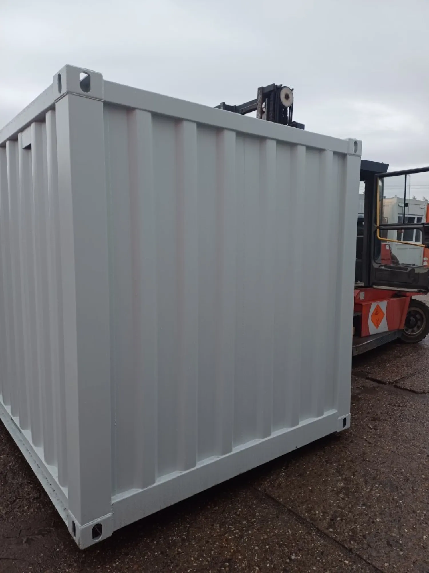 Je opatřen kapsami pro vysokozdvižný vozík, dále k manipulaci slouží oka pro jeřáb. Do 13´ kontejneru lze naložit 6´ kontejner a tím ušetřit finance vynaložené na dopravu. Tento skladový kontejner není certifikovány jako nákladní nebo přepravní kontejner ISO.