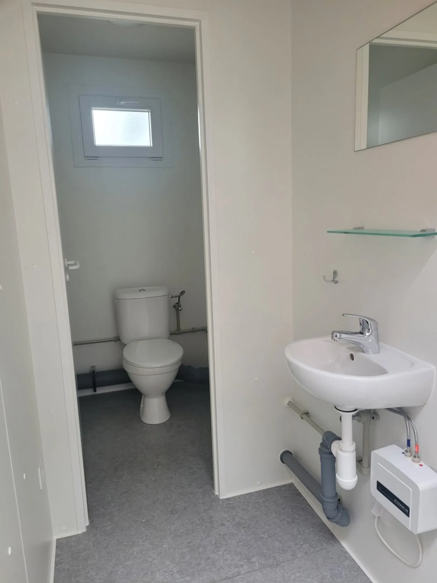 Toaletní kabina TK3 o rozměru 3x2,5 m. Buňka je obložena hladce hoblovanými prkny z materiálu Thermowood bez povrchové úpravy. Buňka je rozdělena na dvě části - jedna část pro ženy a druhá pro muže. Každá část má samostatný vchod. Dále je vybavena 2x sanitárním oknem. Každá část obsahuje WC oddělené vnitřními dveřmi umyvadlo a průtokový ohřívač. Část pro muže má navíc pisoár.