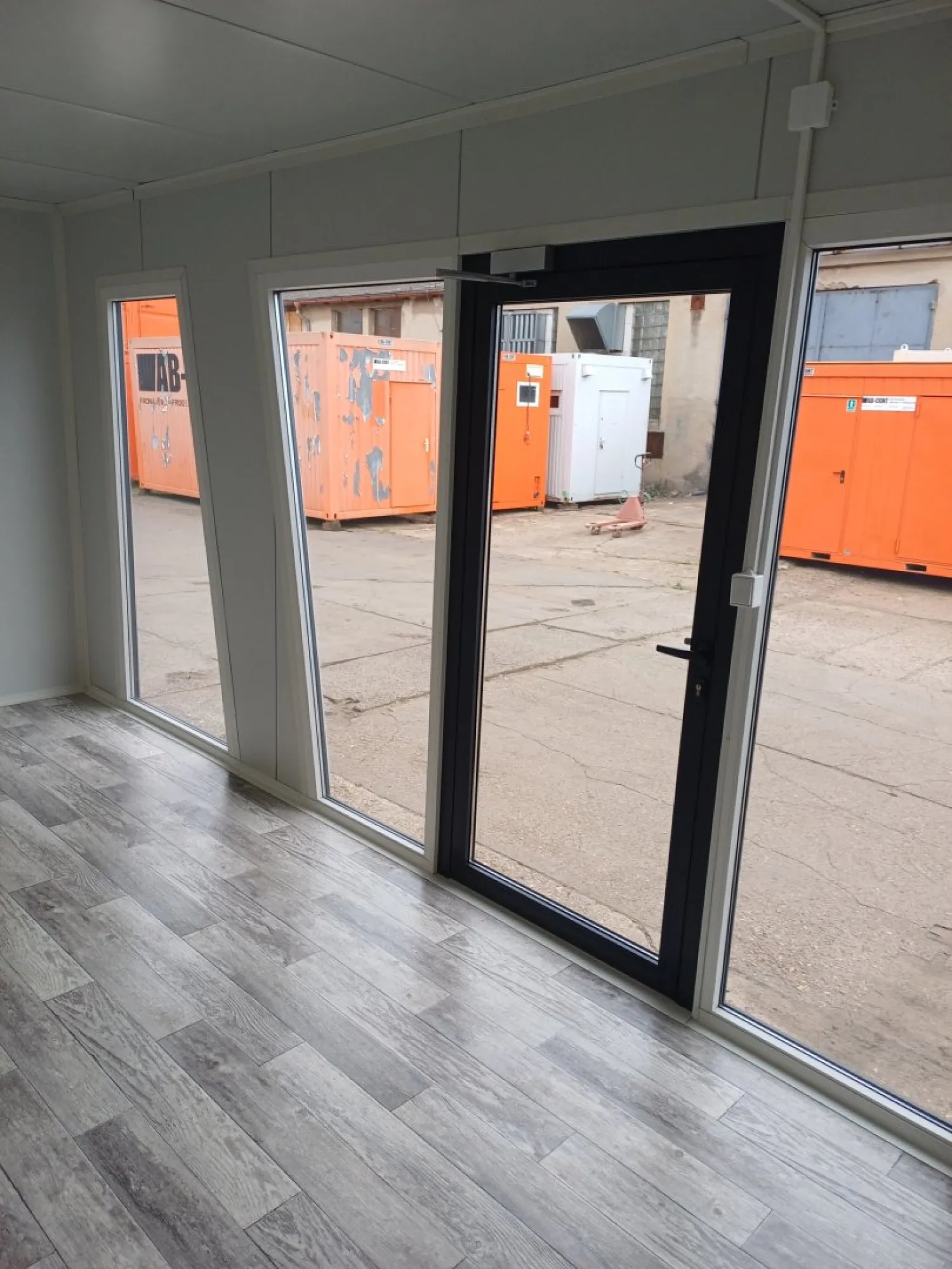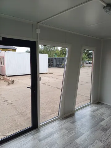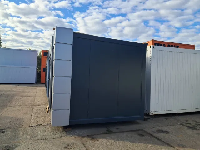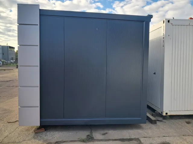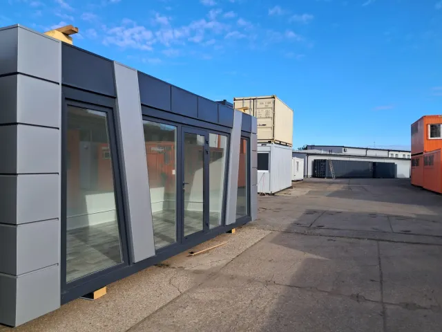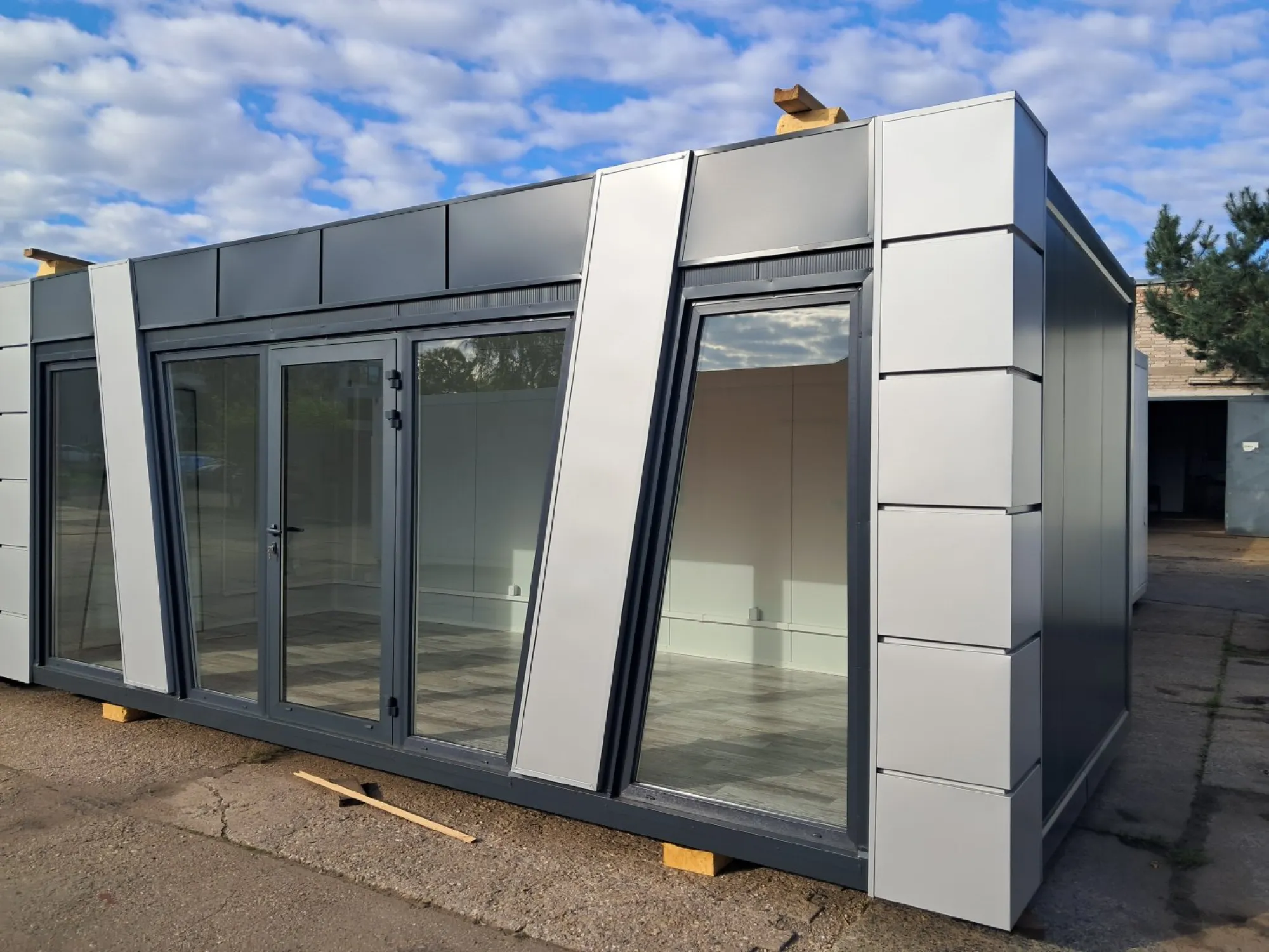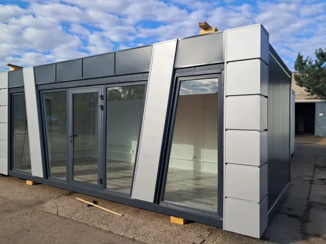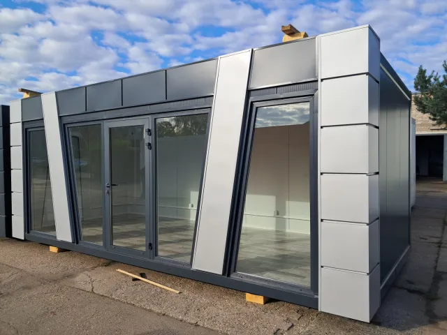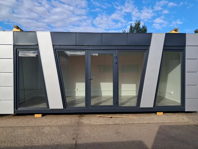 Pavilon má rozměr 7x3 m. Stěny pavilonu jsou z PU panelů. Na pavilonu jsou dekorativní fasádní kazety (2x roh, 1x atika, 2x zkosené). Pavilon je vybaven prosklenými hliníkovými dveřmi 1,1x2,1 m a 4x pevnou šikmou vitrínou v PVC rámu. Dveře jsou navíc osazeny dveřním zavíračem.