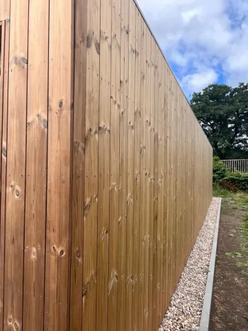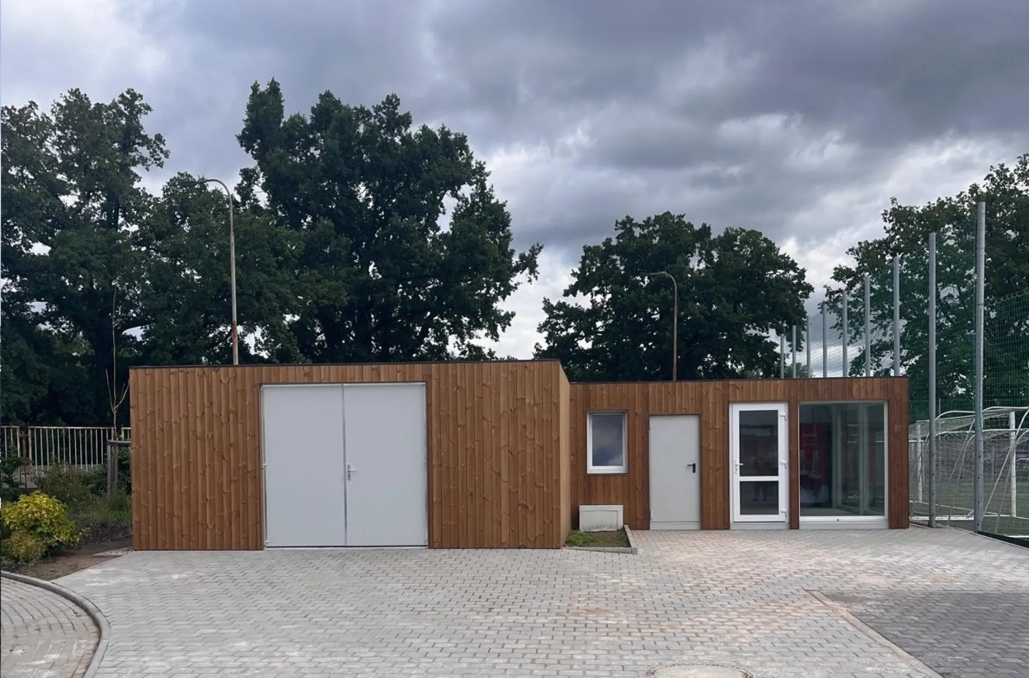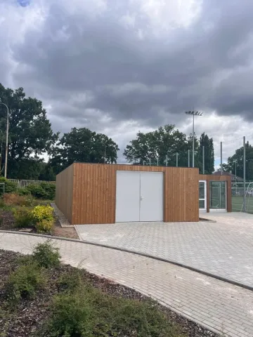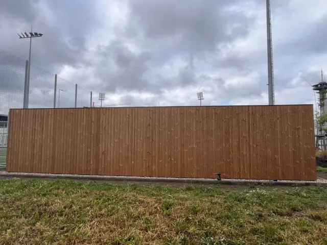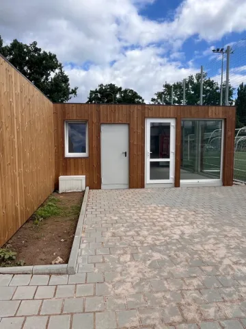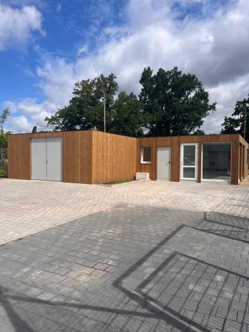 Sestava se skládá z 10ti buněk. Každá z buněk má rozměr 6x2,5 m. Sestava je vybavena celoprosklenými plastovými dveřmi s bezpečnostním sklem, dvoukřídlými ocelovými dveřmi a atypickým prosklením. Celá sestava je obložena dřevěnou odvětrávanou fasádou Thermowood.